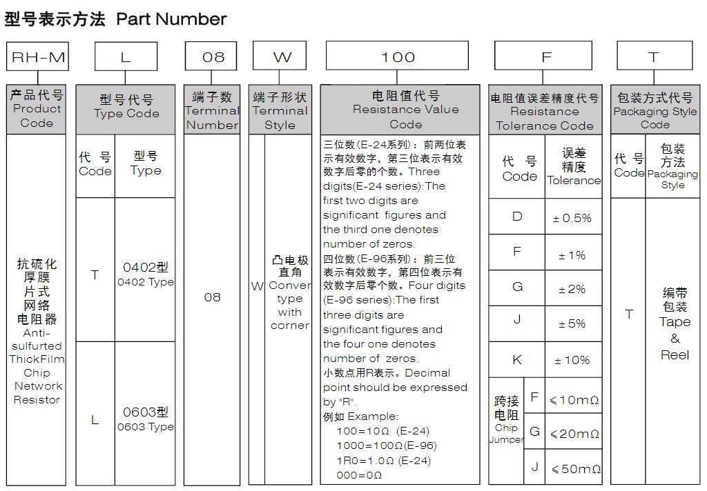 風華高科 抗硫化厚膜片式網(wǎng)絡電阻器型號命名規(guī)則: