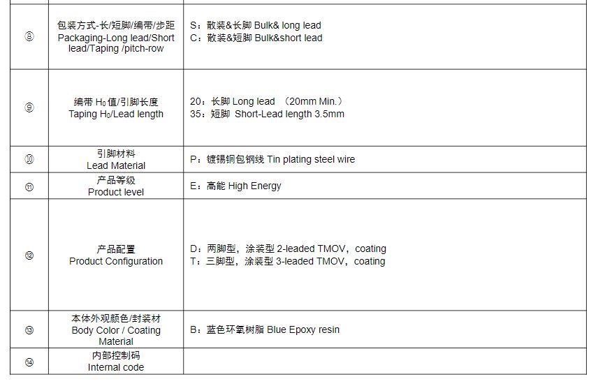 風華高科R系列壓敏電阻器型號命名規則: