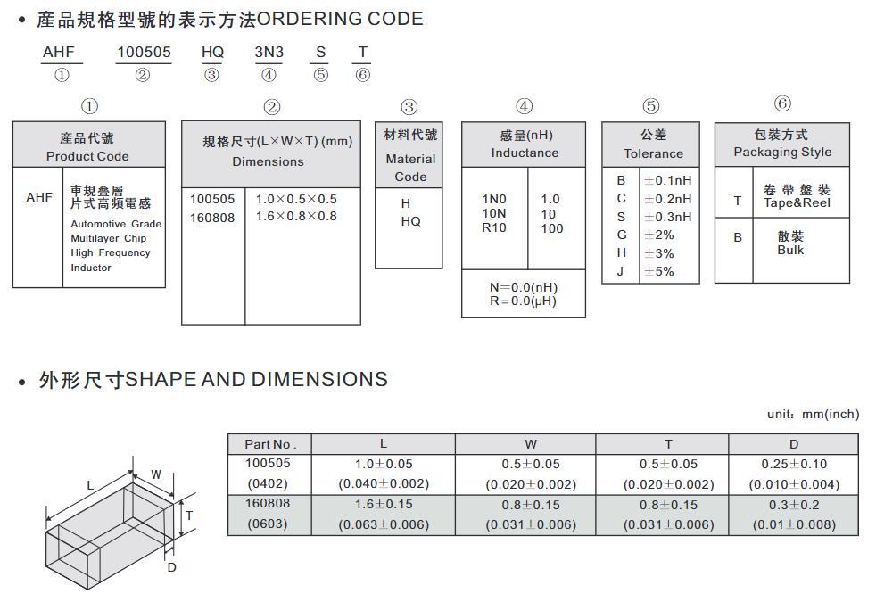 車規(guī)疊層片式高頻電感器 Automotive Grade Multilayer Chip RF Inductors