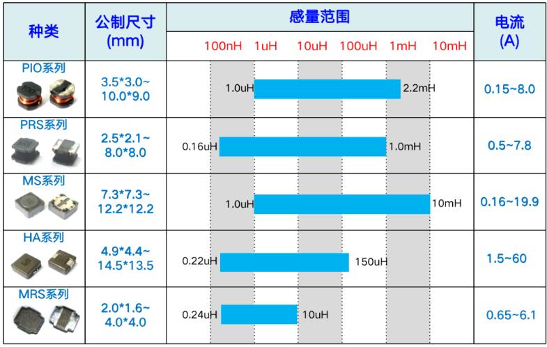 ■貼片功率電感:MRS系列功率電感器、PIO系列功率電感 、MS系列功率電感器、PRS系列功率電感器、HA系列功率電感器 、PIM&PFM系列功率電感器