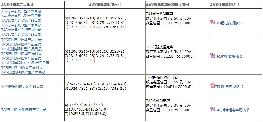 AVX鉭電容產品系列: