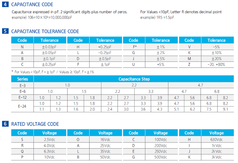 電容公差:±5%(J)、±10%(K)、±20%(M)
