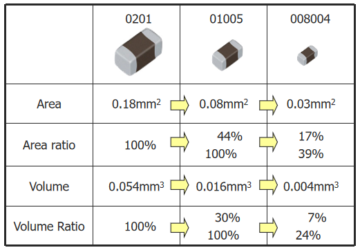 太陽誘電推出超小型電容(以008004英寸的產品)為例進行說明: