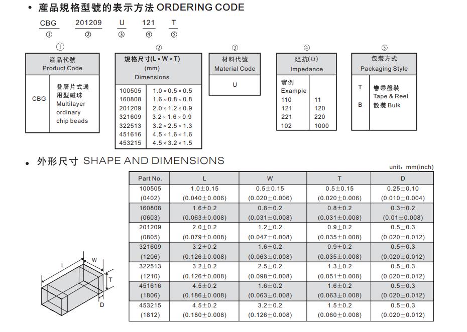 華科貼片磁珠命名規(guī)則對(duì)照表